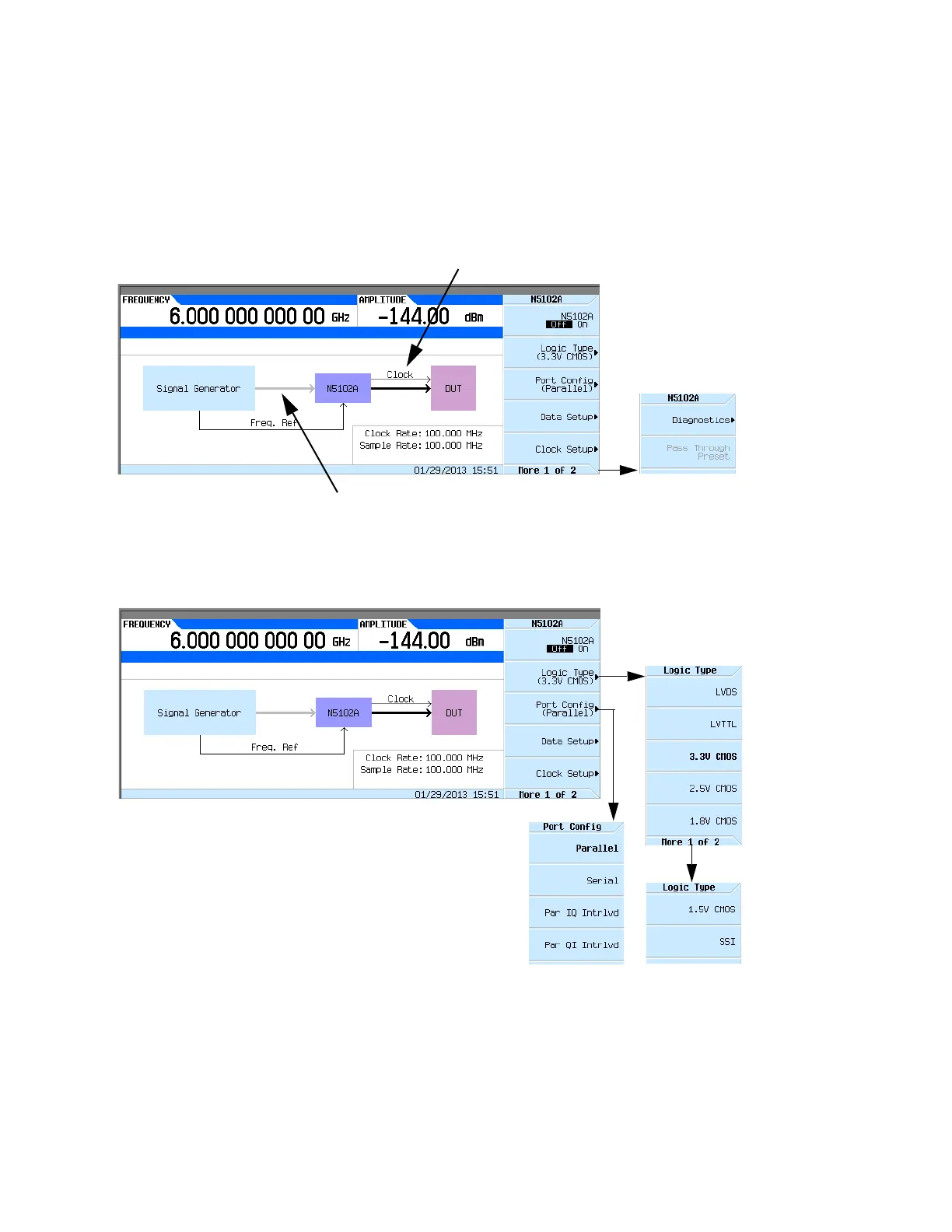 Figure 17-11 Logic and Port Configuration Softkey Menus