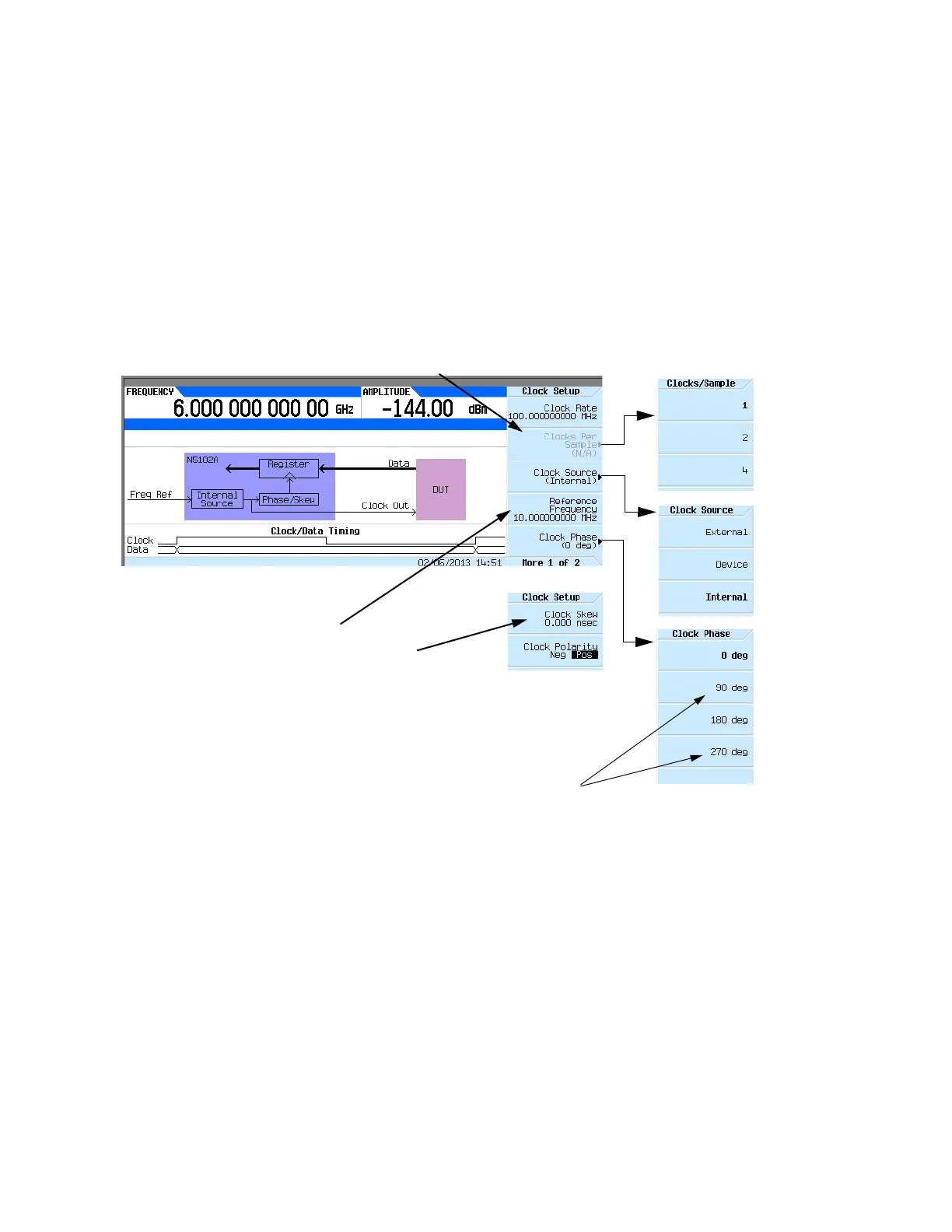 From this menu, select the clock signal source. With each selection, the clock routing display