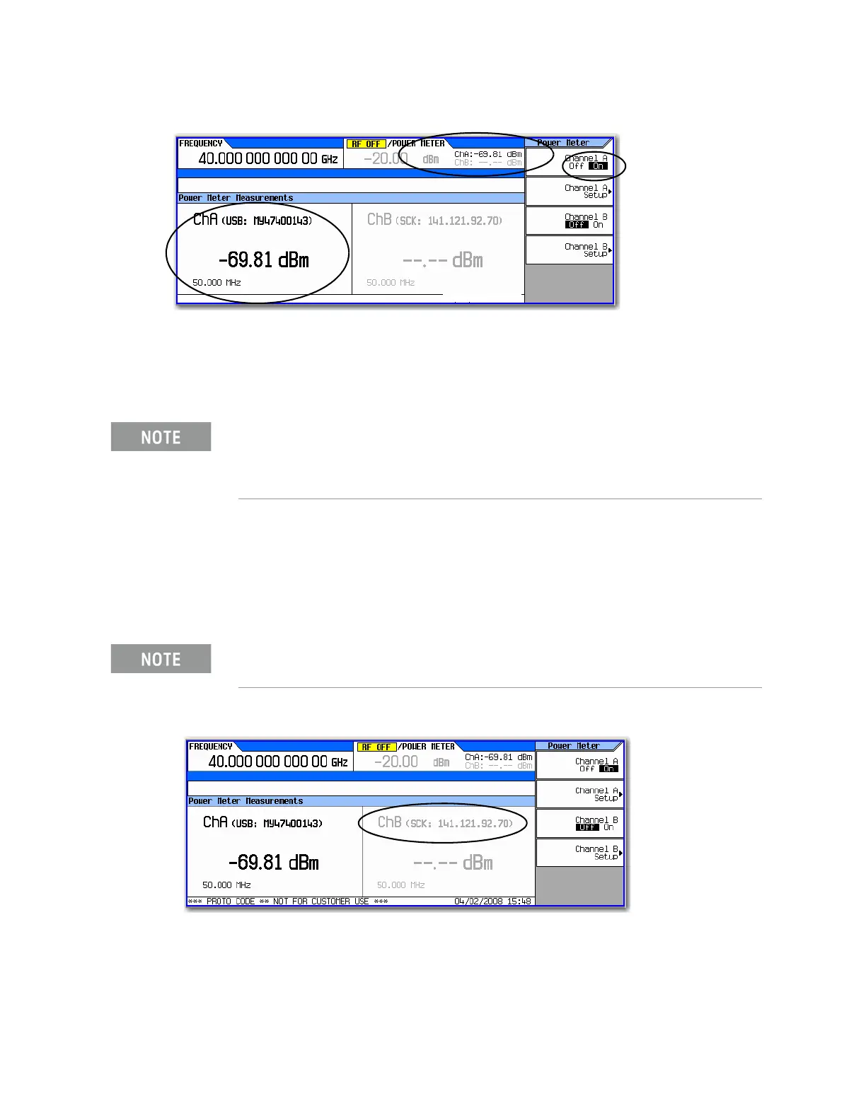 Figure 5-9 Channel B Power Sensor with IP Address Entered