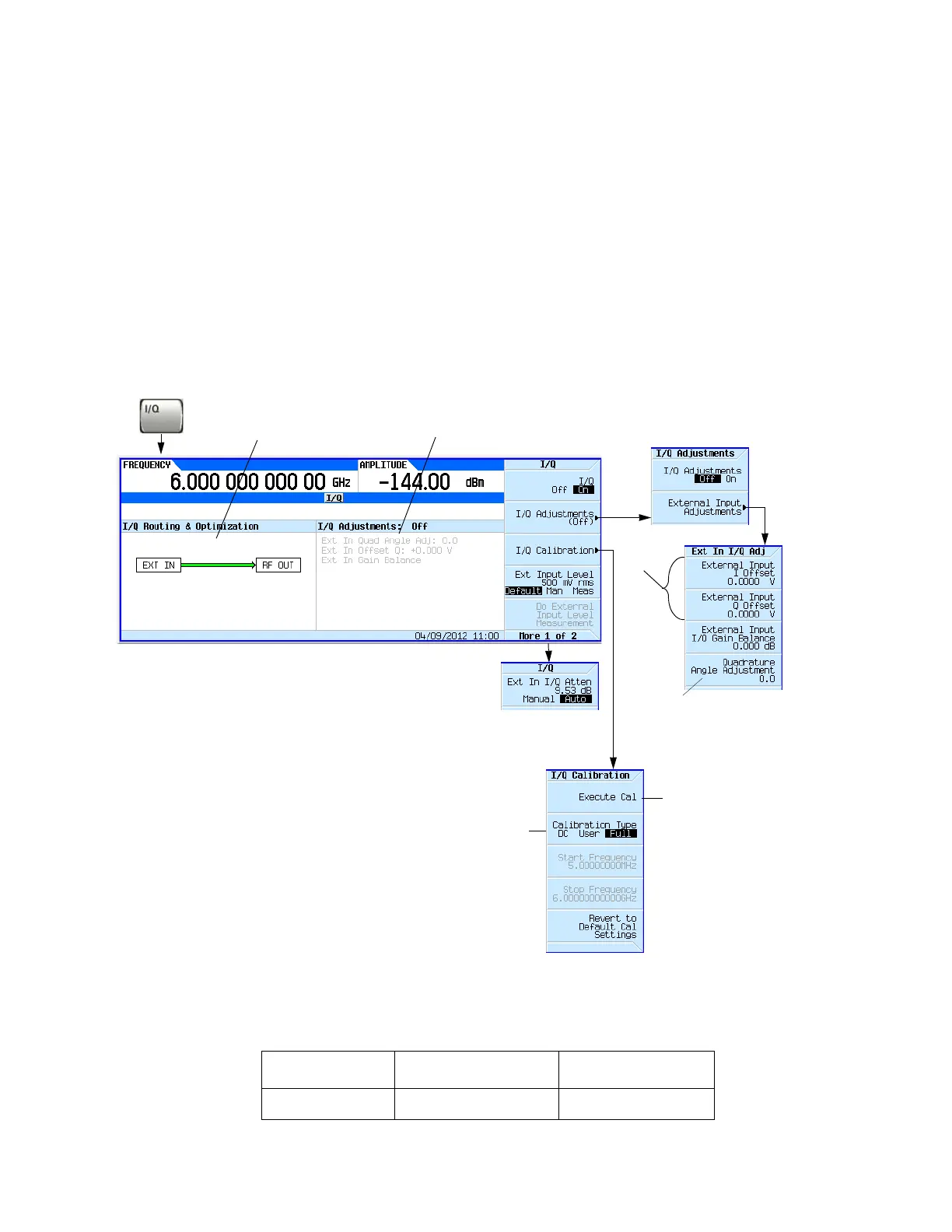 of the I/Q adjustments. Grey text indicates I/Q