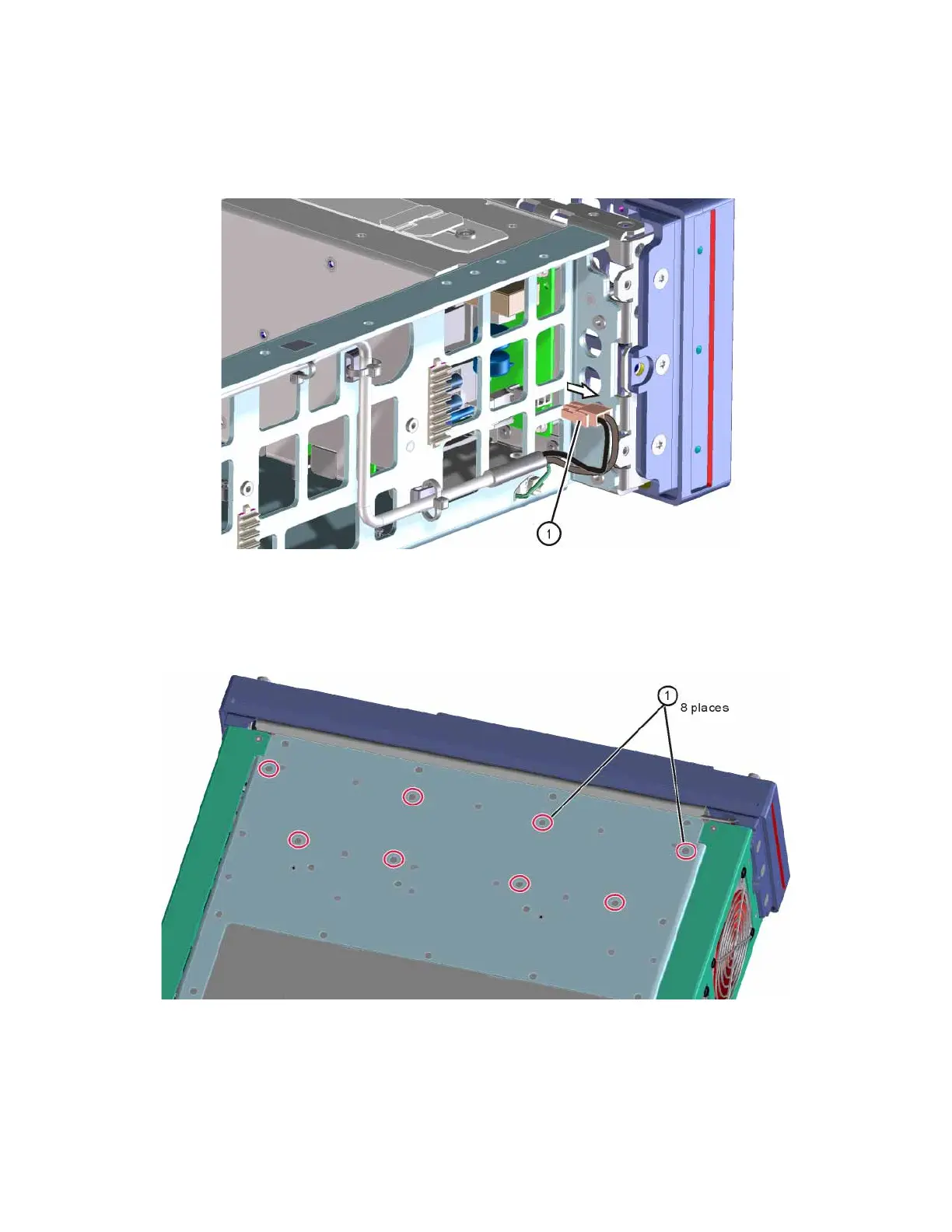 6. Refer to Figure 3-14. Using the T-10 driver, remove the eight screws (1)