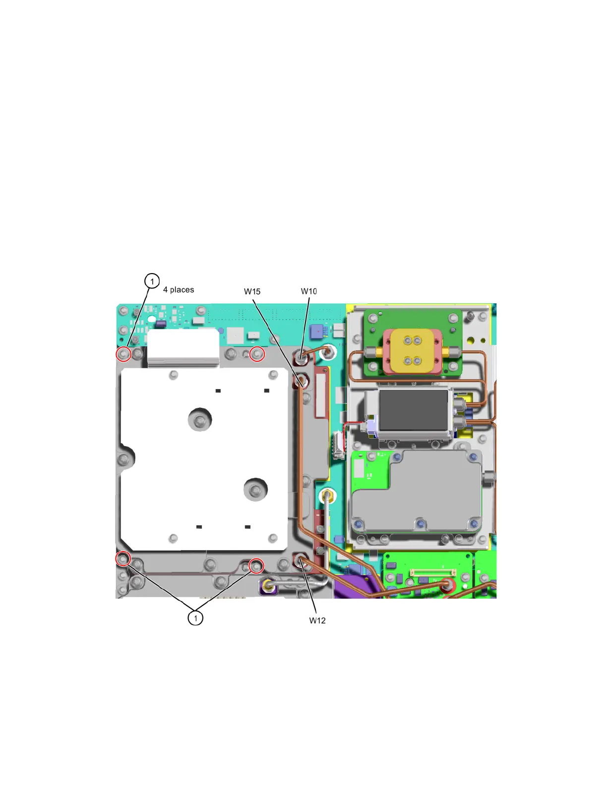 2. Remove the four screws (1) (0515-0664) that attach the A18 Lowband