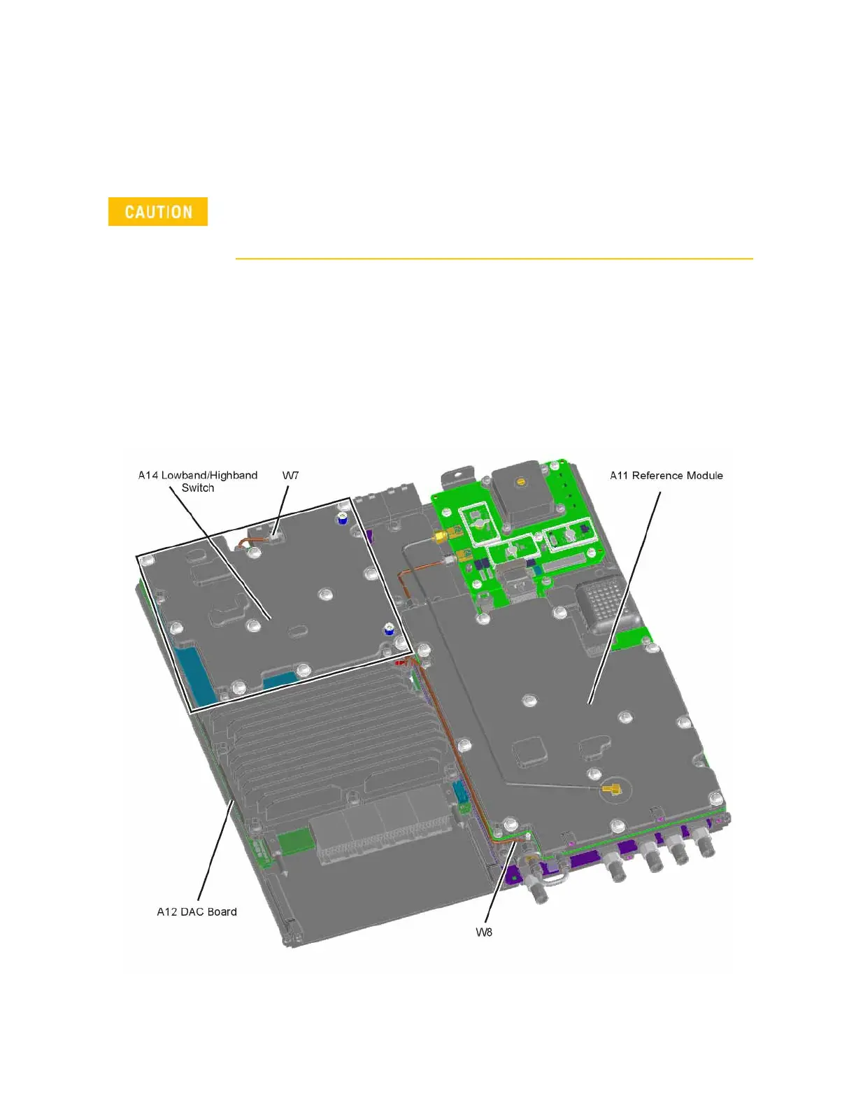Refer to Figure 3-43. The A11 Reference Module, A12 DAC board, A14