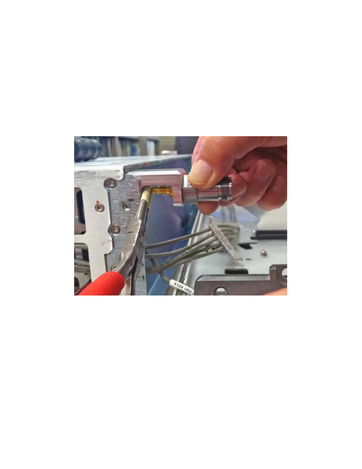 3. Reconnect the semi-rigid cable nut to the rear of the RF connector. Torque