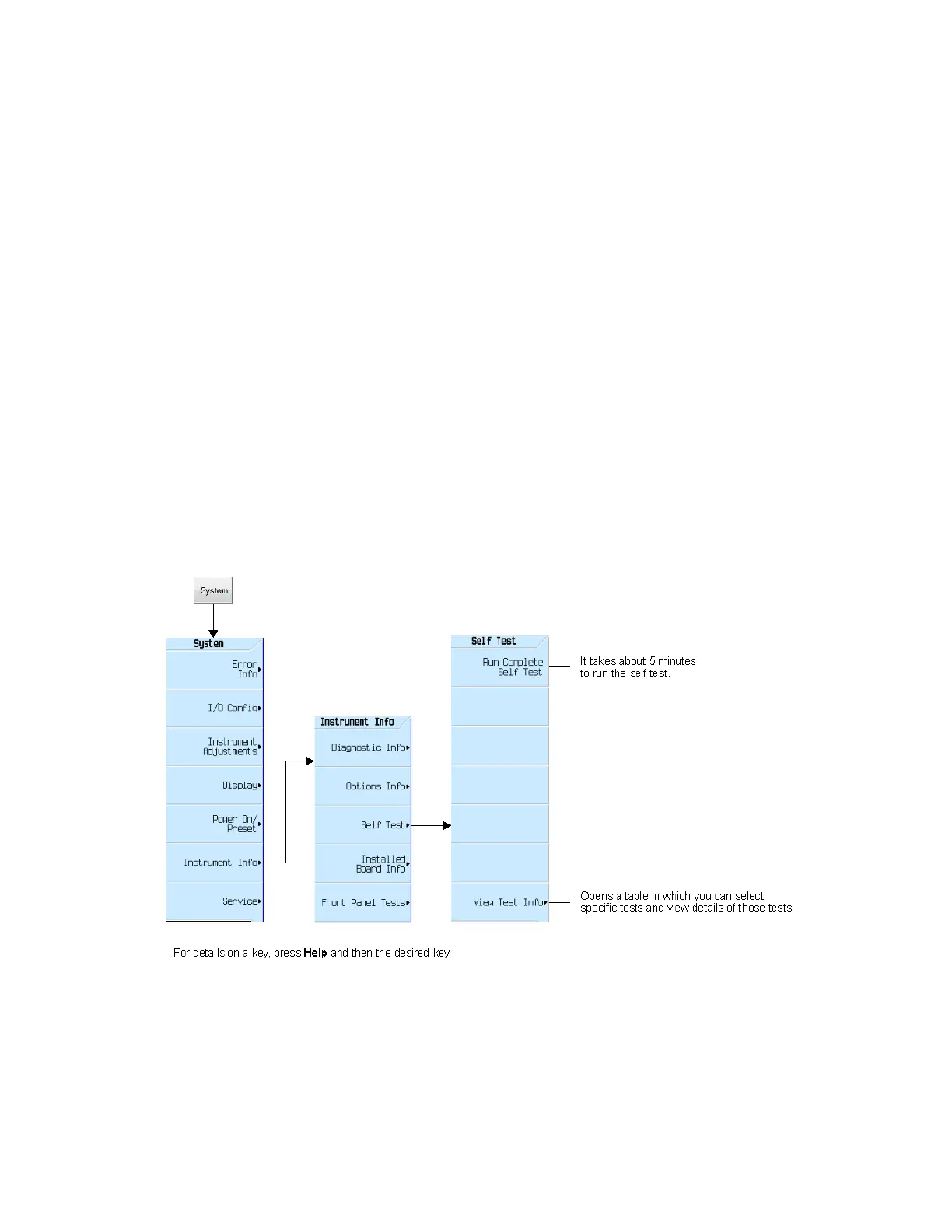 front panel, see “Run Self Test Using the Front Panel” on page 22