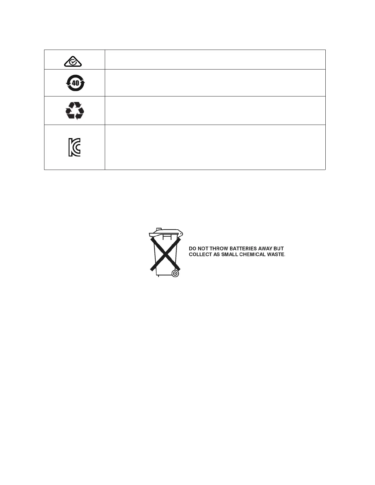 This symbol on all primary or secondary packaging indicates compliance to China standard GB