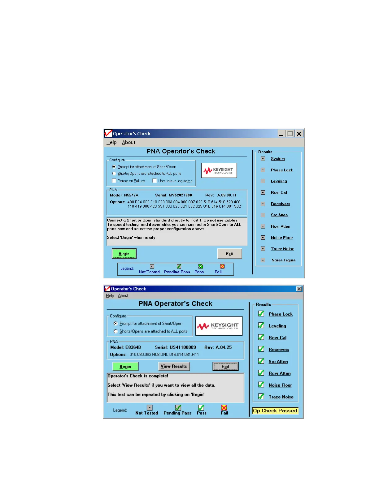 each test (refer to Figure 3-3). The PNA Operator’s Check dialog box will