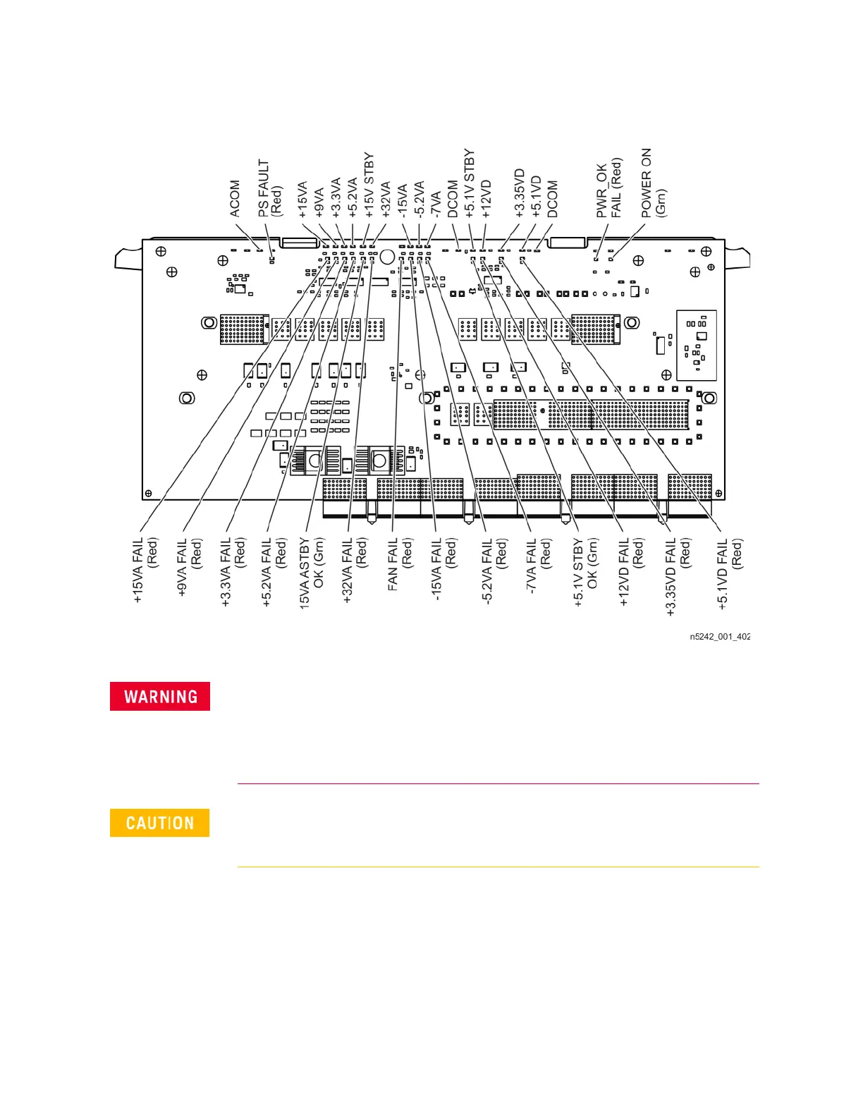 Figure 4-2 A15 Midplane Board Power Supply LED Indicators and Measurement Points