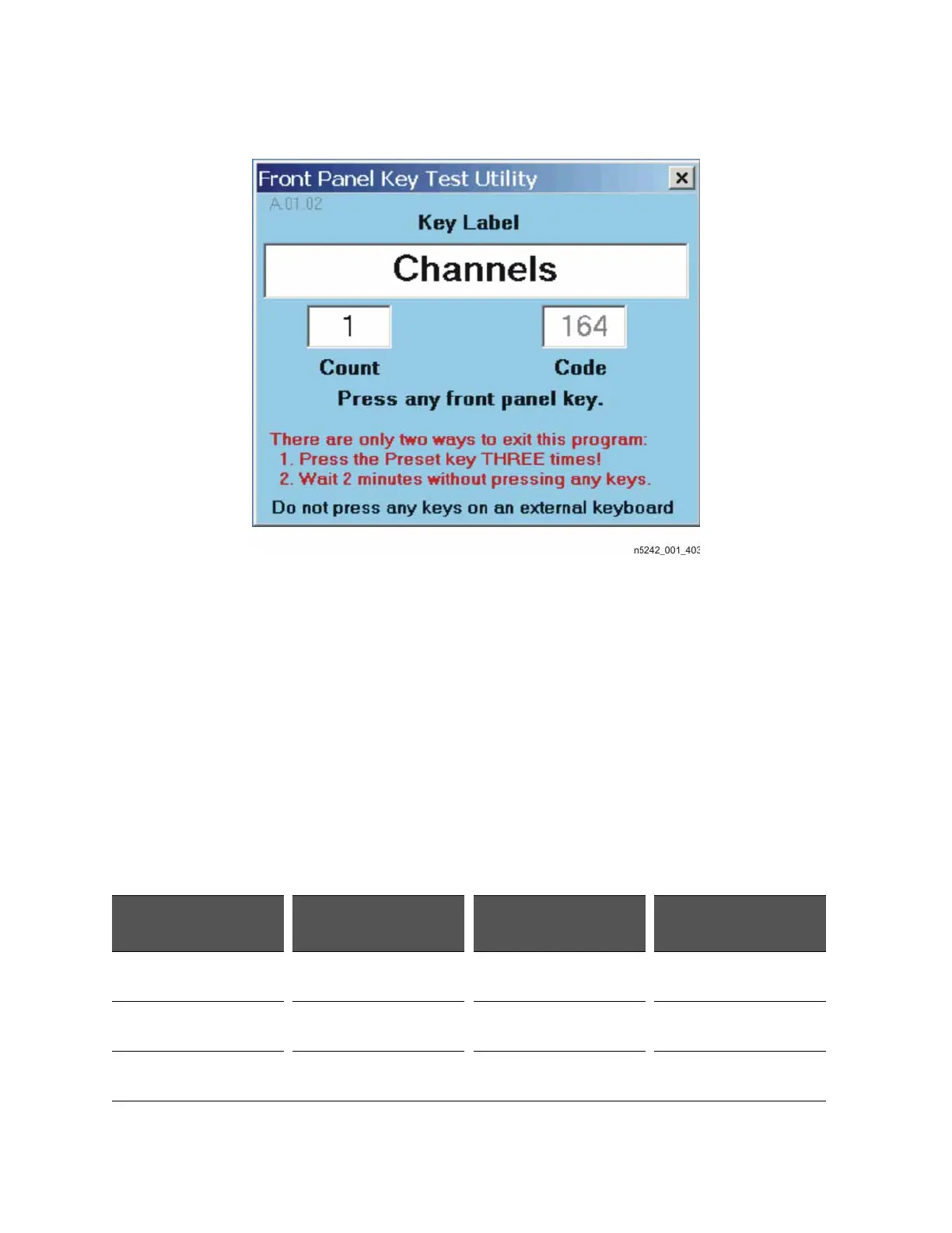 Figure 4-4 Front Panel Key Test Utility Dialog Box