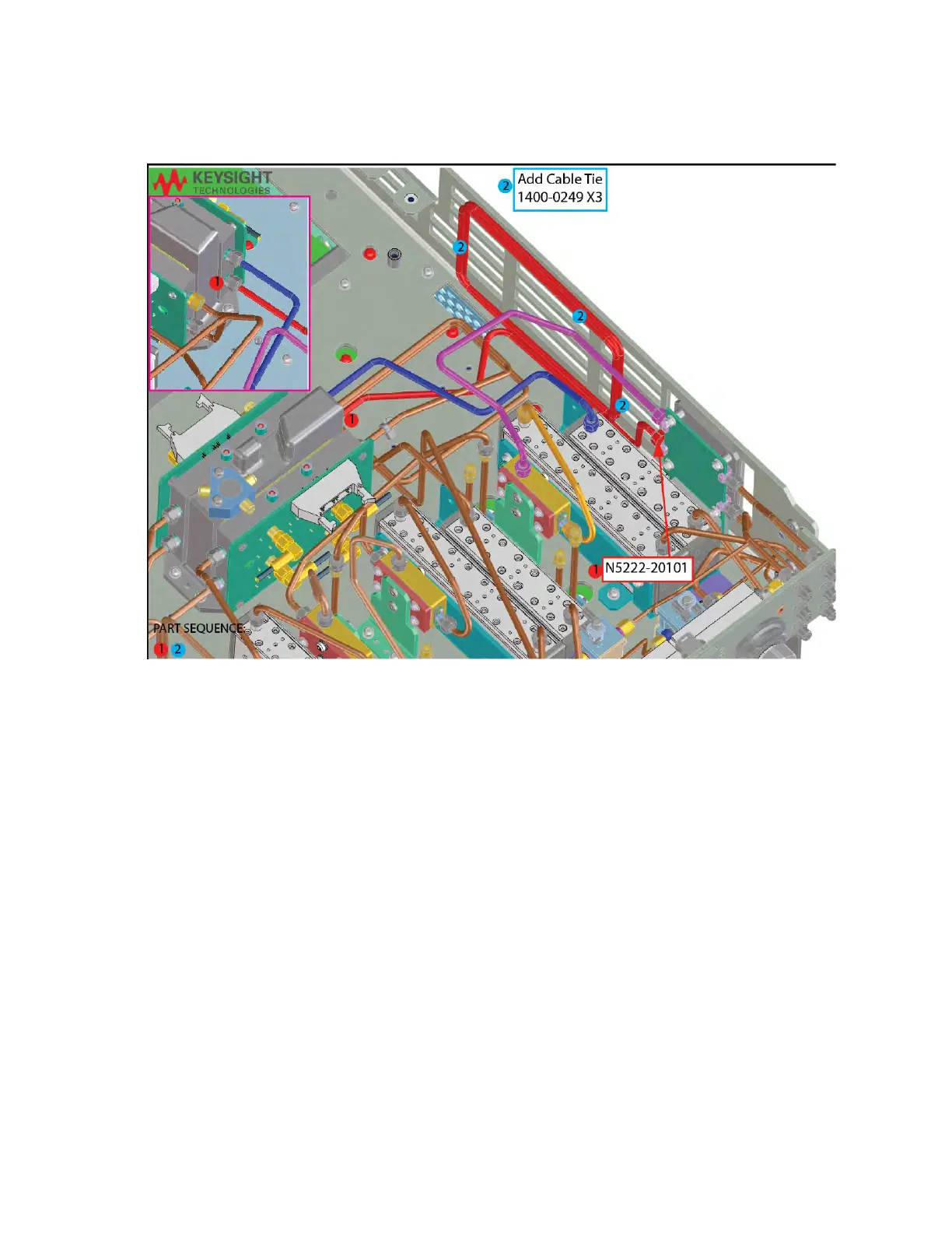 Figure 40 Install N5222-20101 semirigid cable and clamps 1400-0249 (x3)