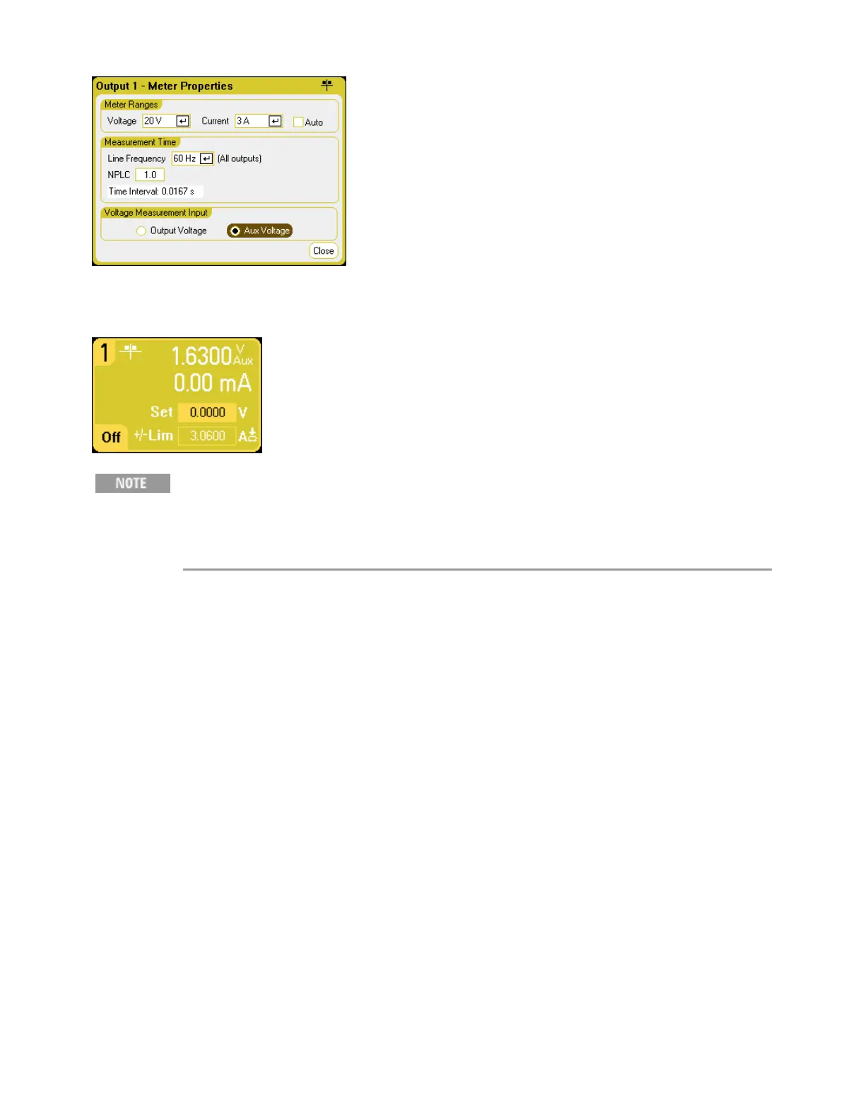 The instrument will continuously display the auxiliary voltage measurement on the front panel Meter