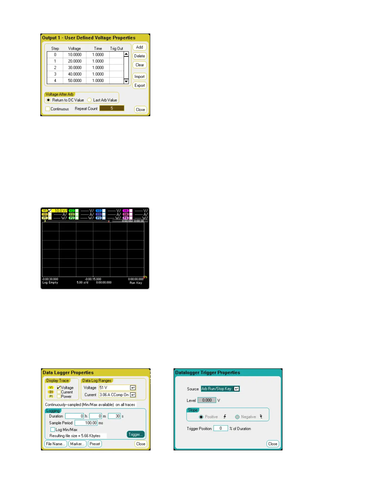 l Select the Trigger button and set the trigger source to Arb Run/Stop Key.