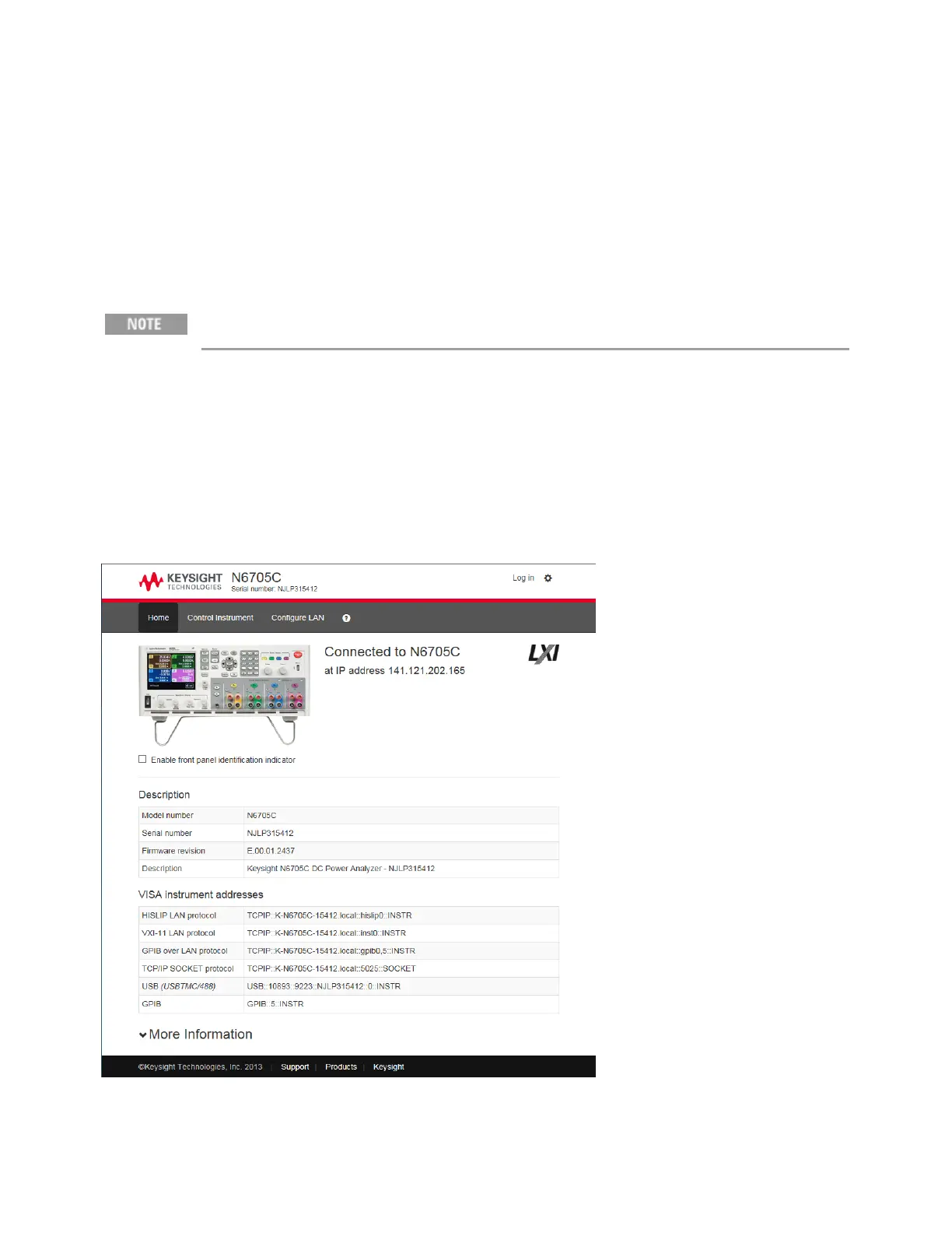 2. Enter the instrument’s hostname or IP address into the browser’s address field. The following