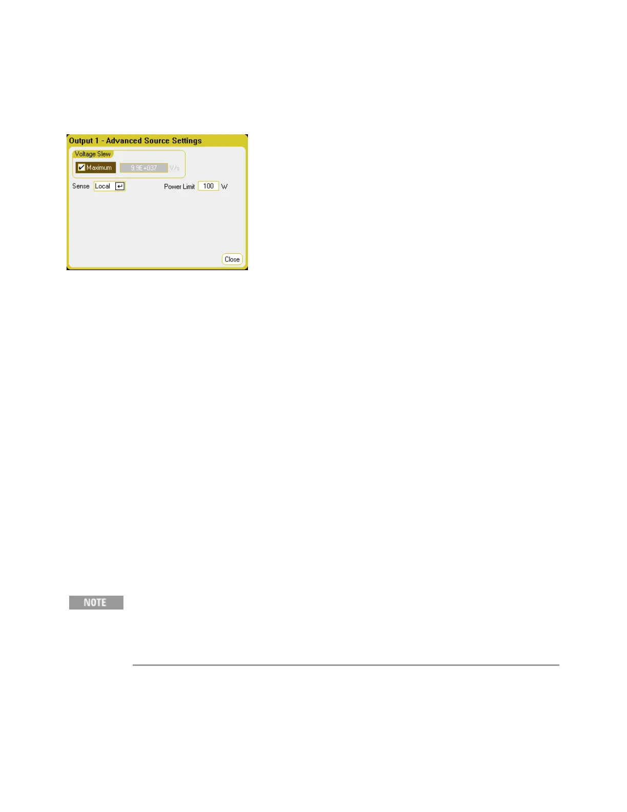 To specify a power limit, press the Settings key to access the Source Settings window. Navigate to