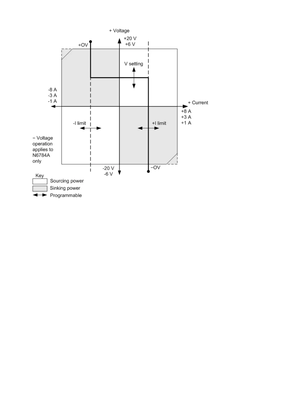 As shown by the vertical portions of the load line, when the unit is sinking power, the output voltage