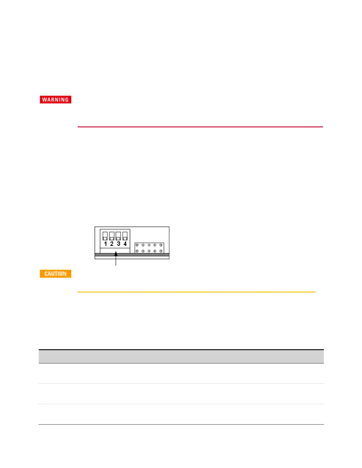 Switches 1 and 2 set the calibration configuration as shown. Switches 3 and 4 are not used.