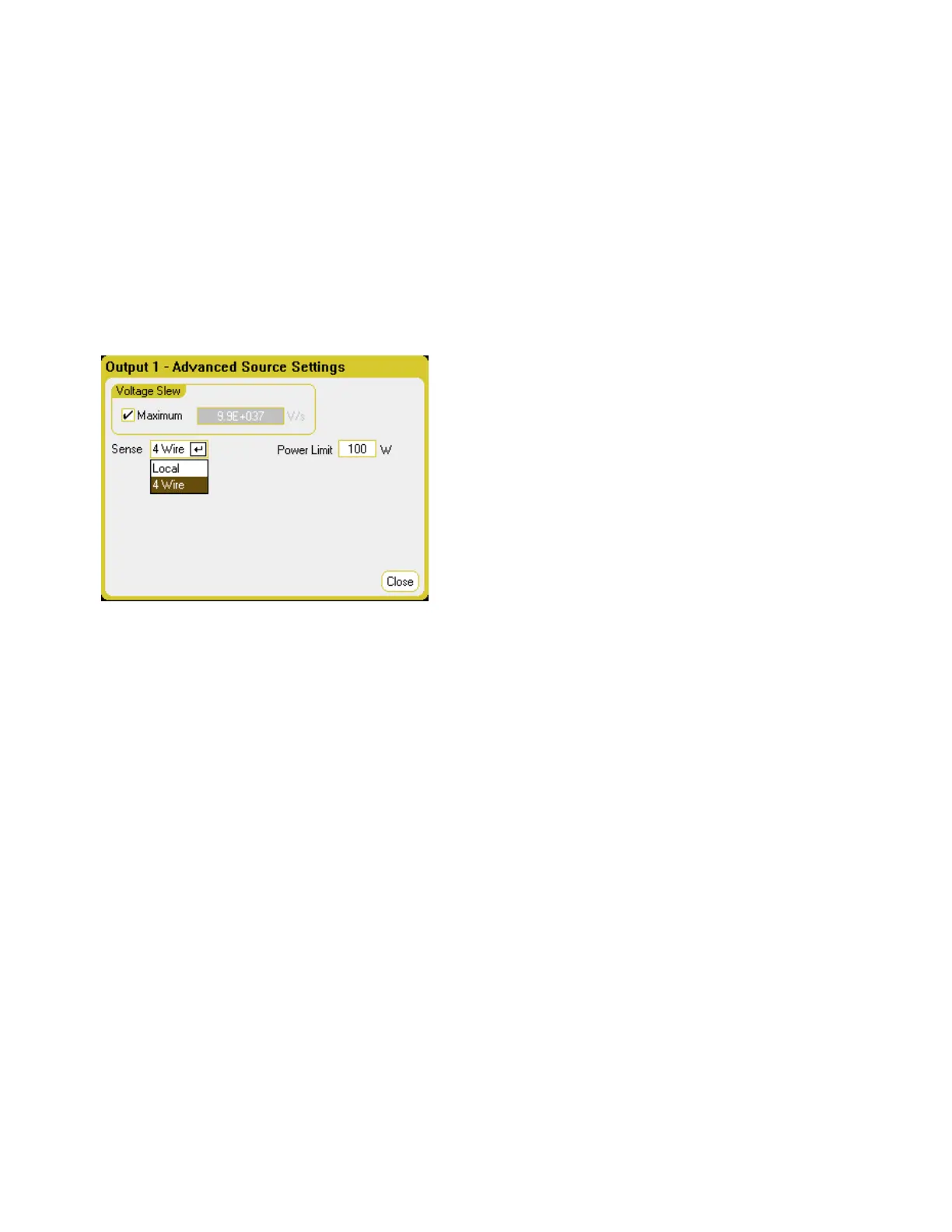 Navigate to and select Advanced. In the Sense dropdown list select 4-Wire.
