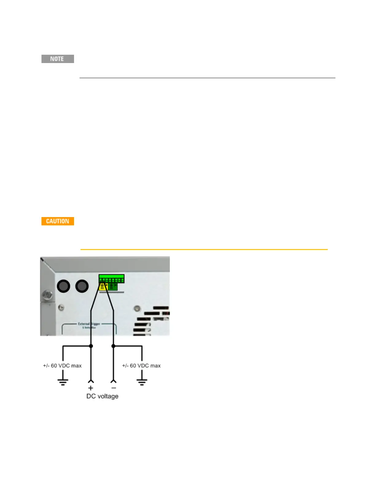 or rear panel input terminal may be more than ± 60 VDC from any other terminal and