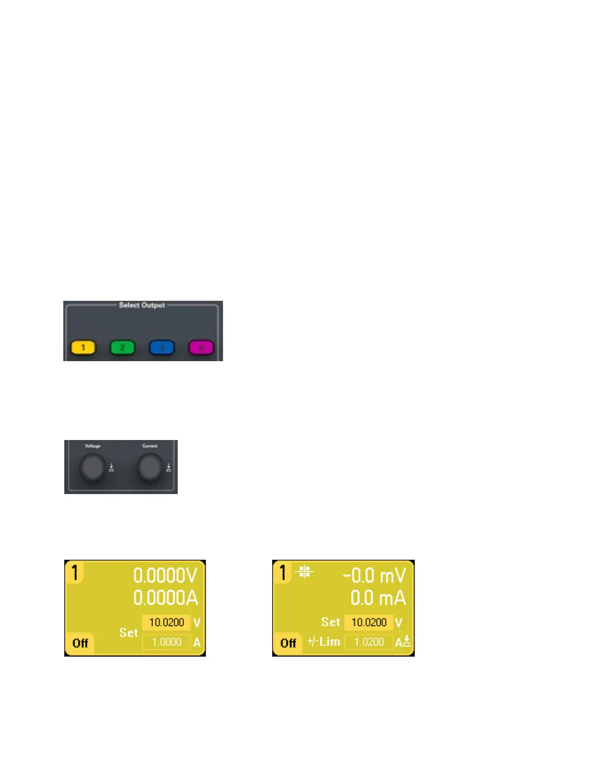 You can also enter the voltage and current values directly in the numeric entry fields (the Set fields) in