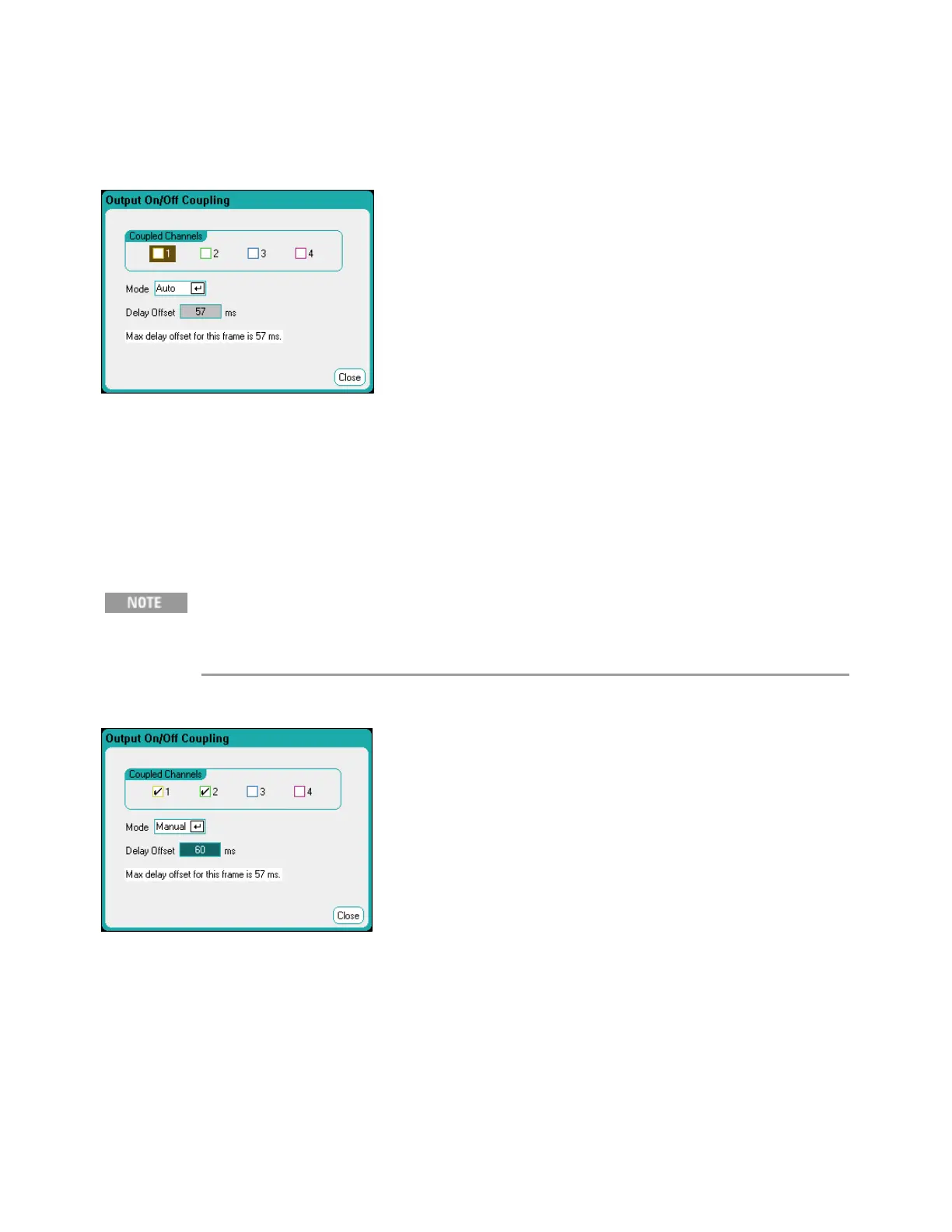 based on the outputs that are coupled. This is displayed in the Delay Offset field. To manually program