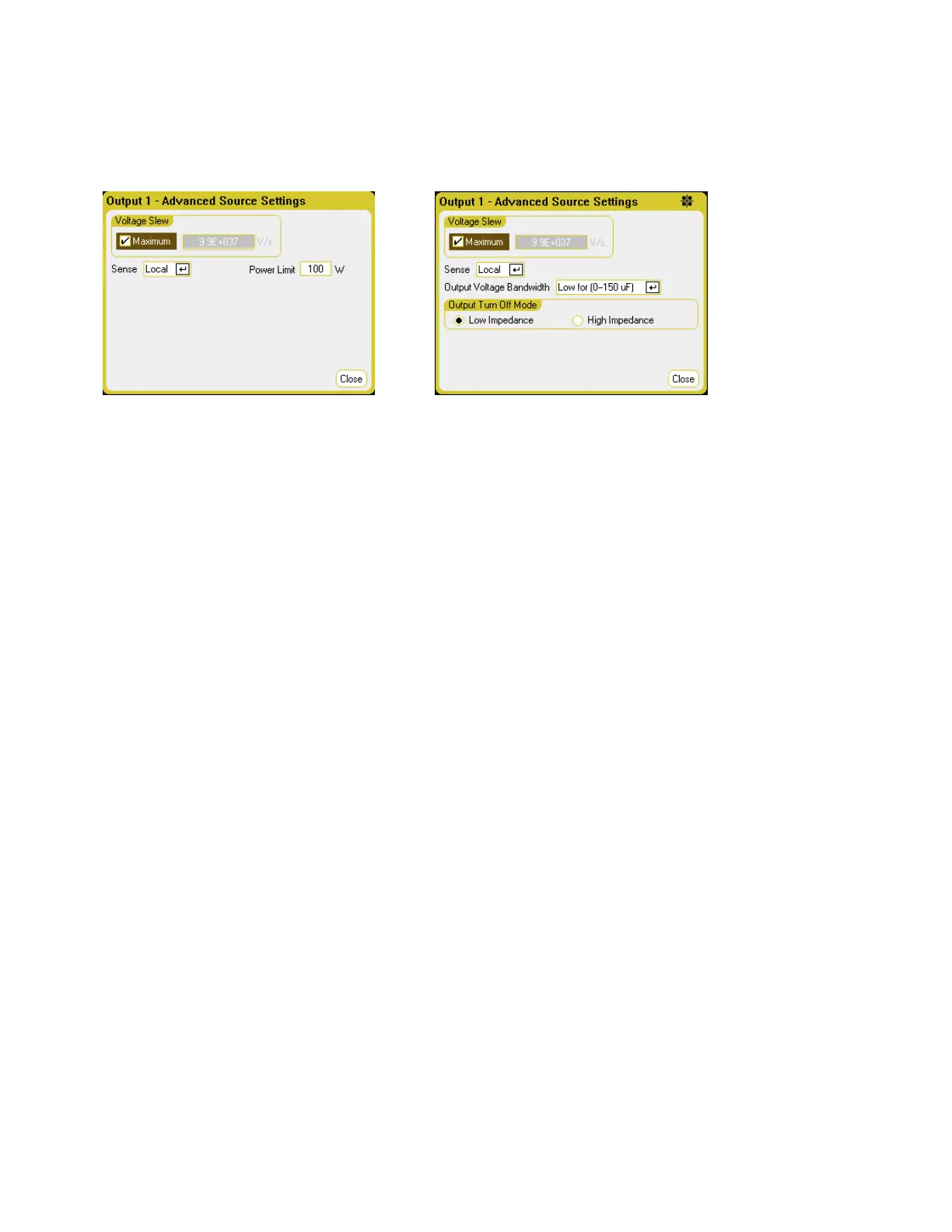 setting. To program a voltage slew rate, enter the rate (V/s) in the Voltage Slew field. Check Maximum