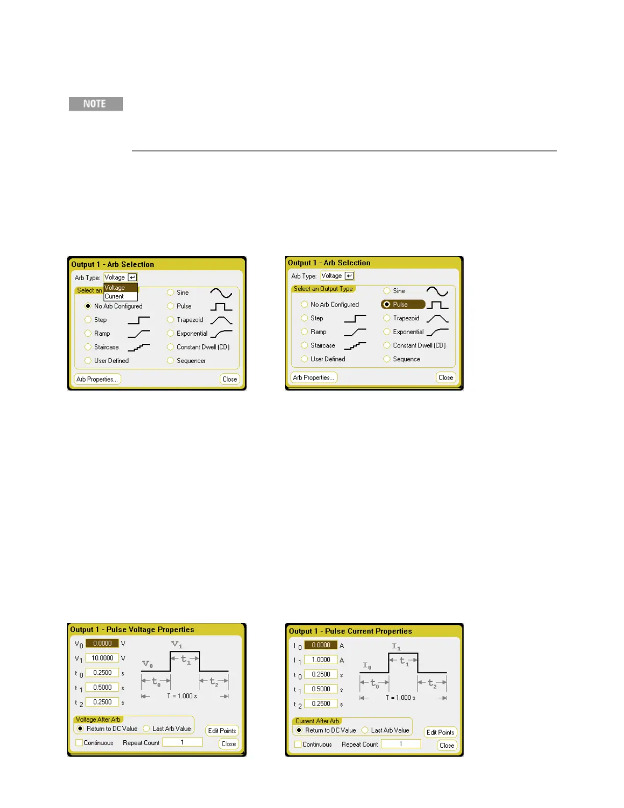 Step 1 – Select a Voltage or Current Pulse Arb: