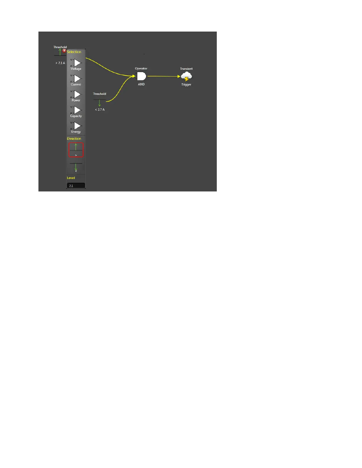 1. Select the Threshold icon from the Source list to place it onto the work area. Select Voltage, > dir-