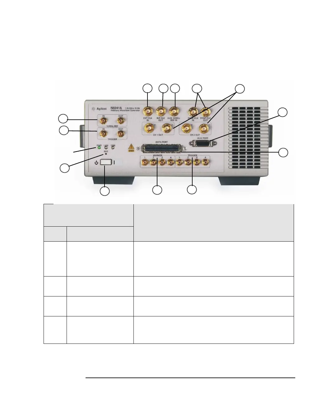 1 EXT CLK IN Use this 50 ohm SMA connector to input an external sample