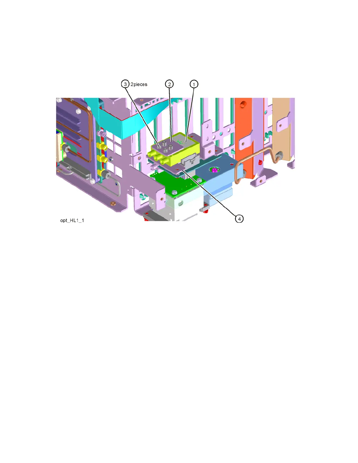 Low Band bracket (4) with the label facing up. Use the two screws (3 )