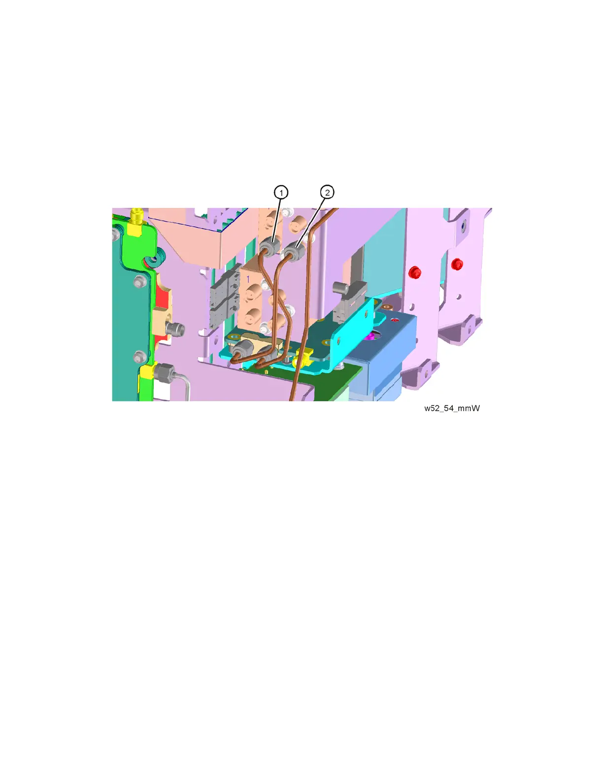 8. Refer to Figure 16-57. Remove cable W54 (N9020-20127) (2) from top