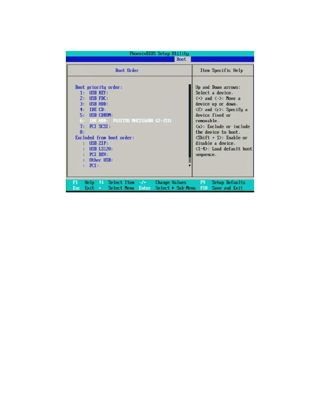 7. If IDE HDD is not listed first in the boot priority, press the Down Arrow on