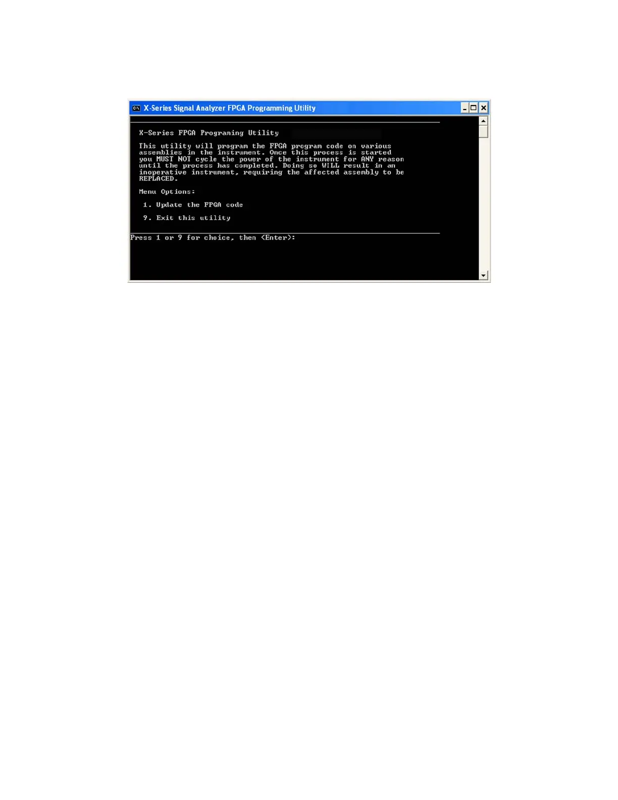 8. To program the FPGA code enter 1 and press Enter. You will need to