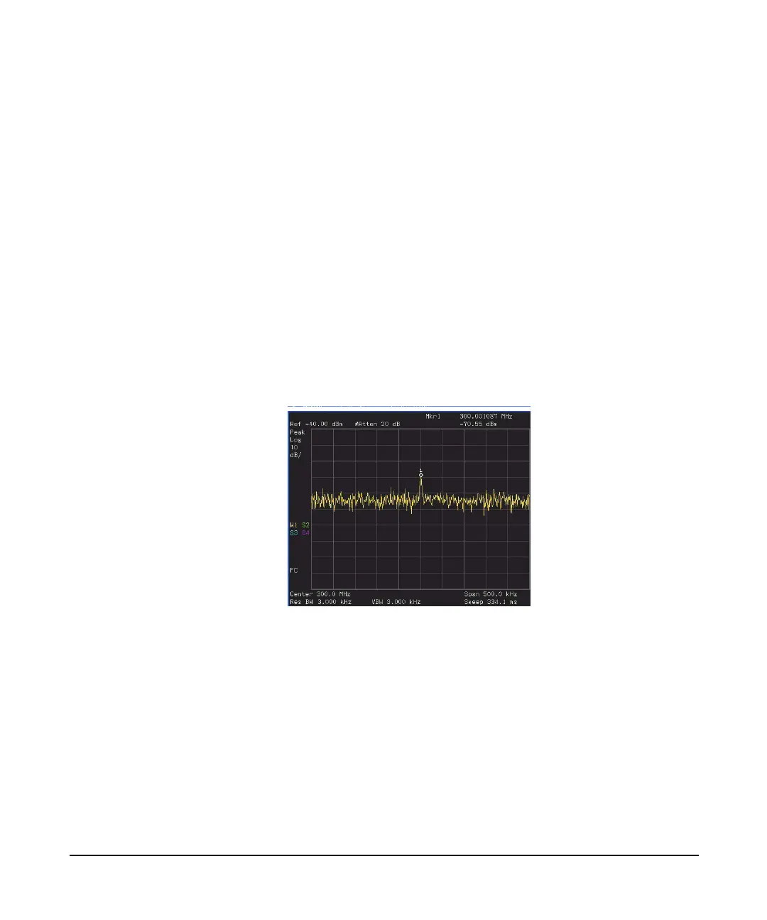 5 Reduce the span to 500 kHz, if necessary re- center the peak: