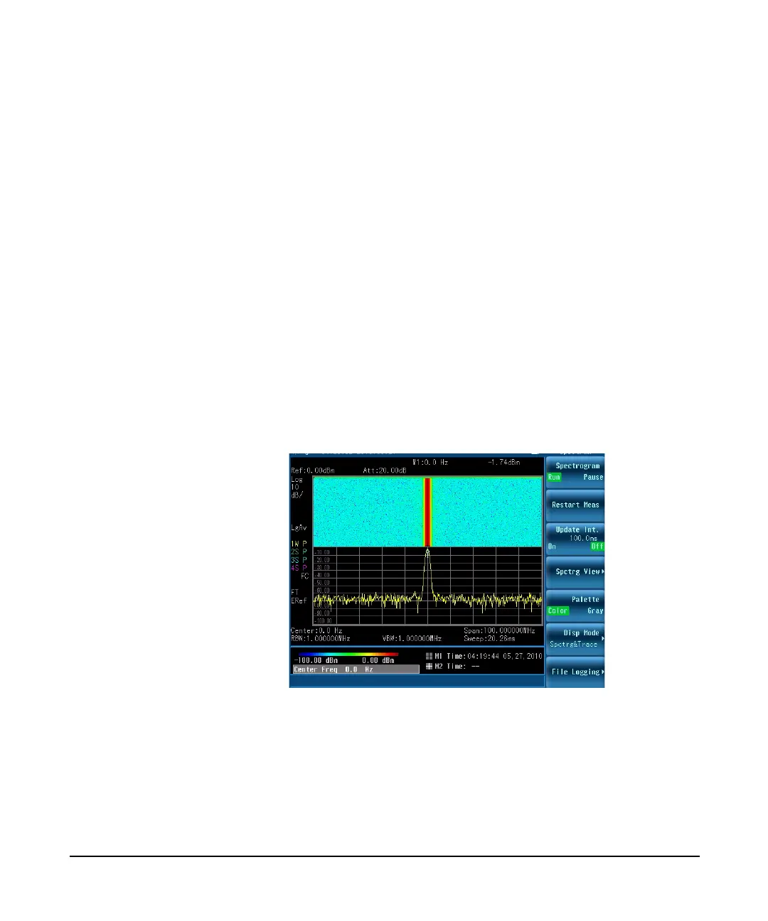 noise floor. The Y- axis represents time, with the trace from