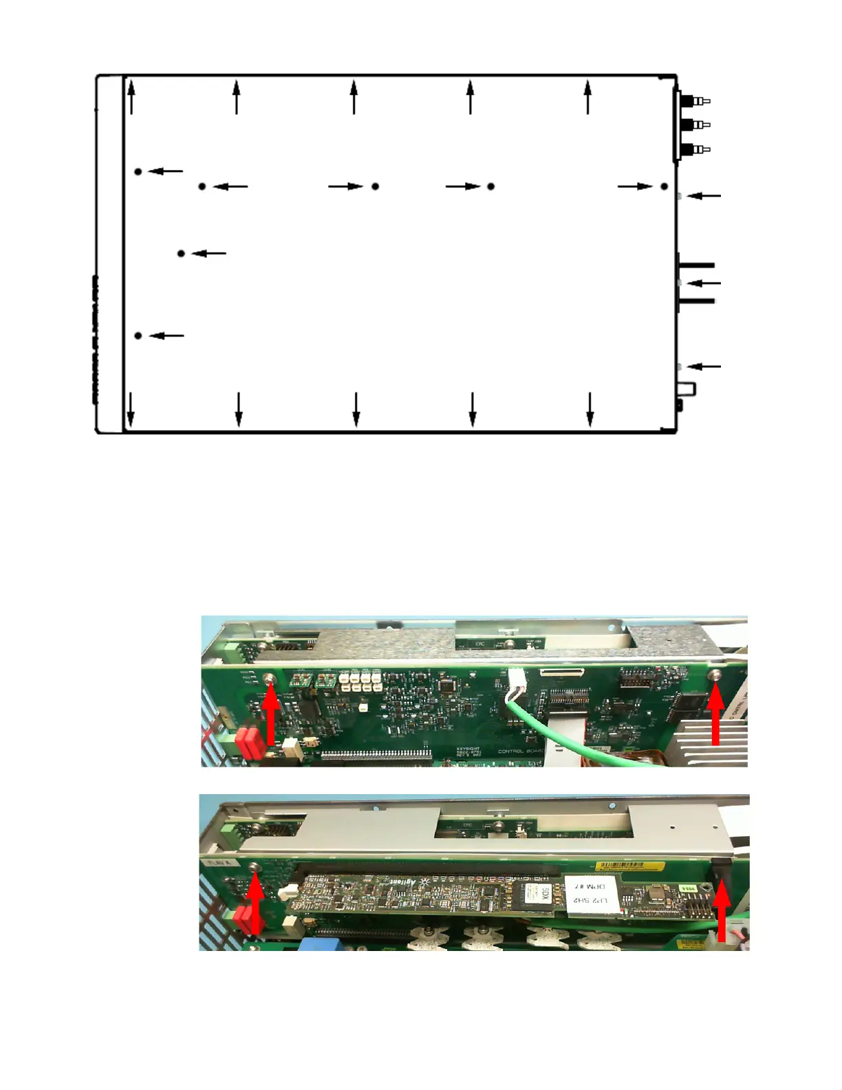 1. As indicate below, first remove the two screws along the top of the Control board. Place the