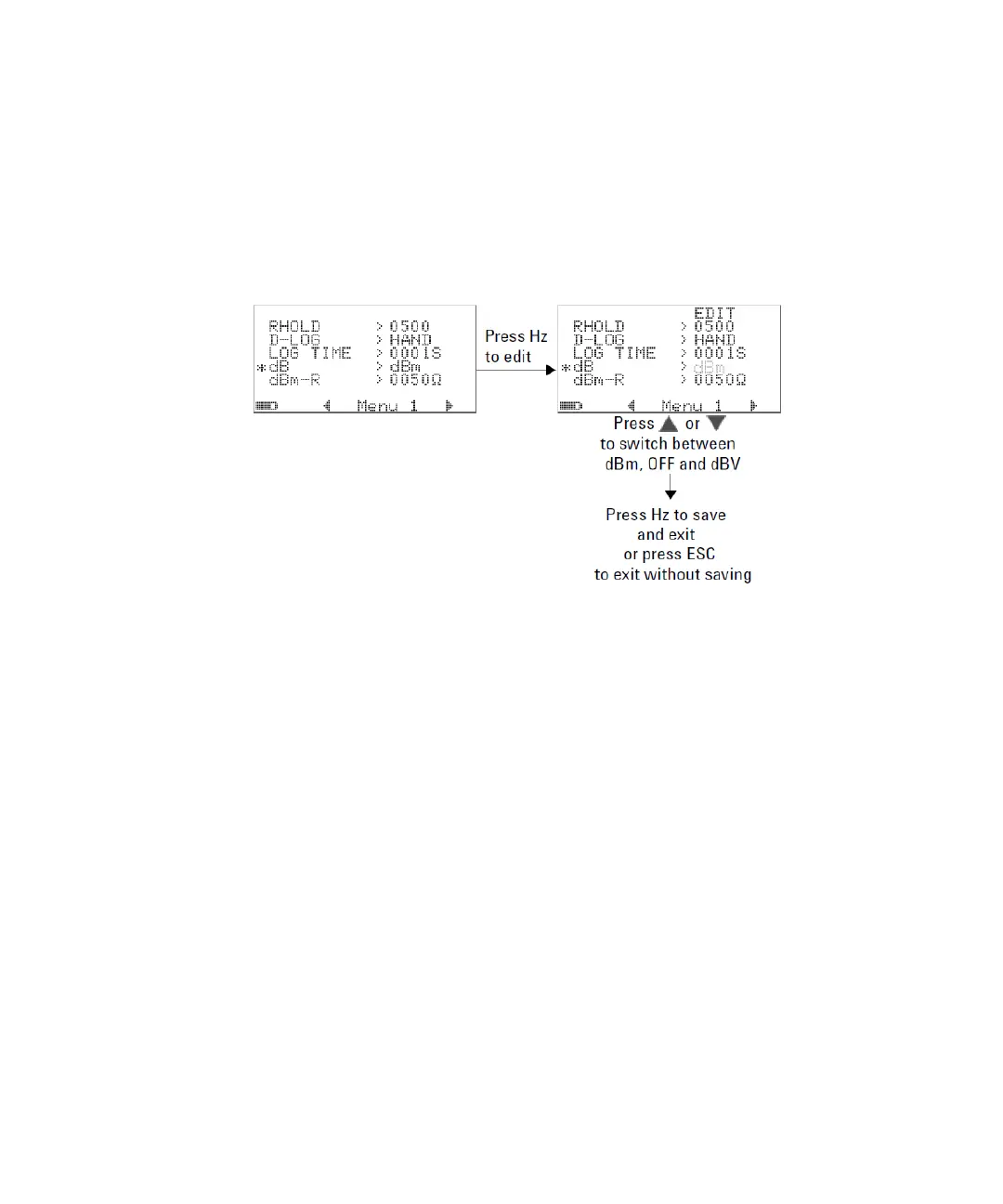 dBm, dBV, and OFF. For dBm measurement, the reference impedance can be set