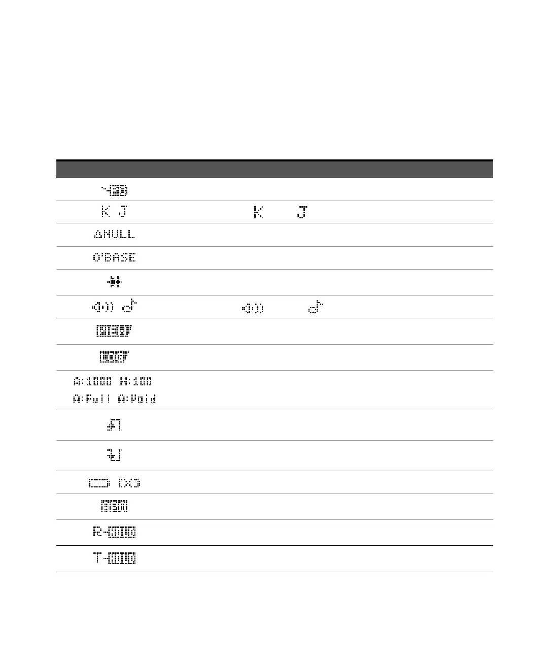 The display symbols are explained in the following tables.