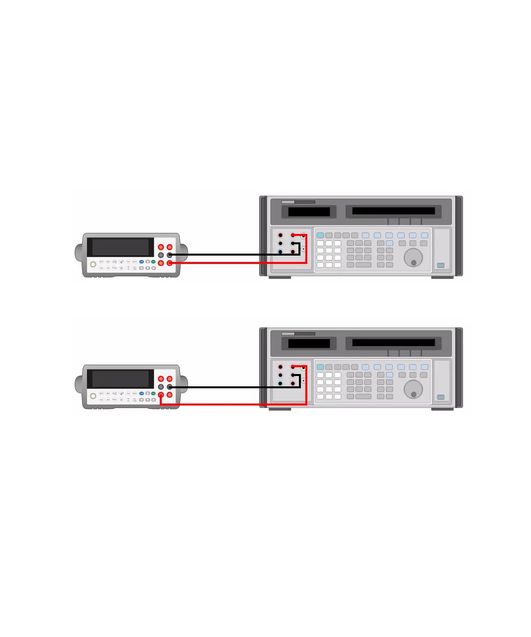 1 Connect the calibrator to the front panel HI and LO input terminals