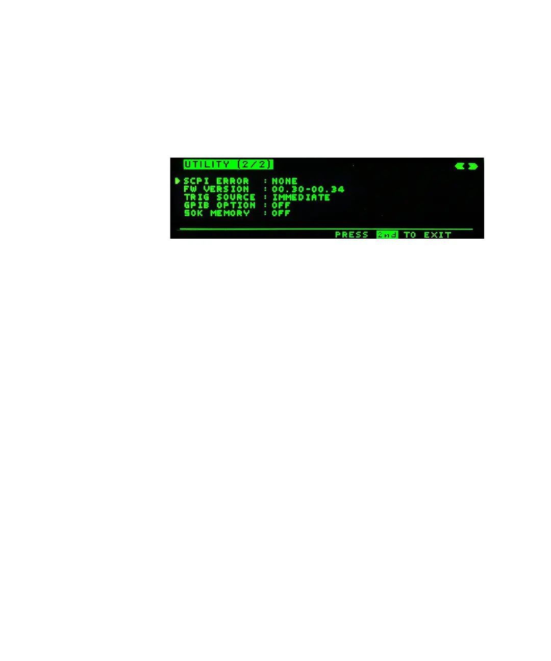 2 If you have purchased the GPIB option, the GPIB Option displays ON.