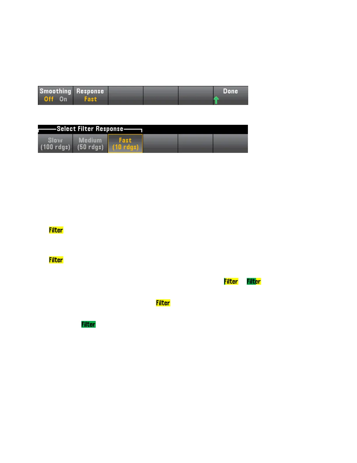 l Too great of reading variation will constantly reset the filter and the filter icon will be solid yellow (