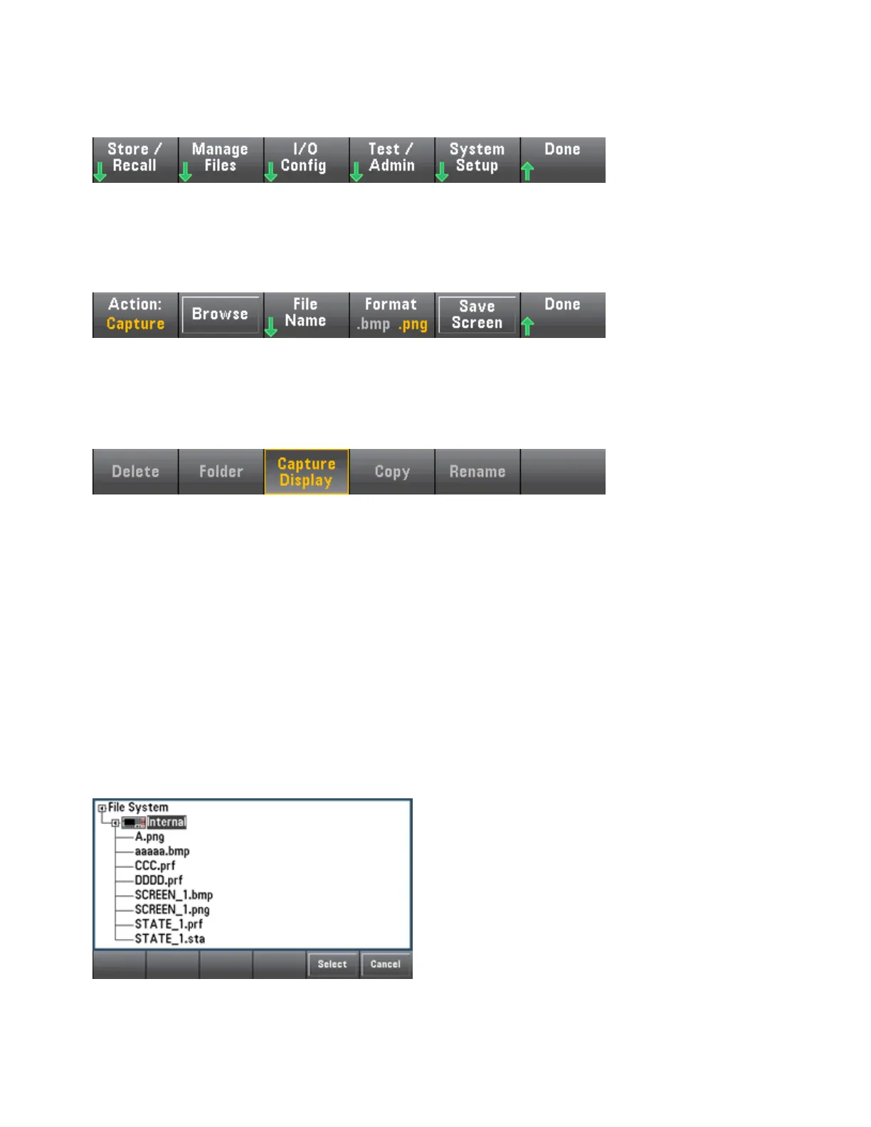 Action specifies the action to perform. Pressing Capture Display saves a screen capture of the display at
