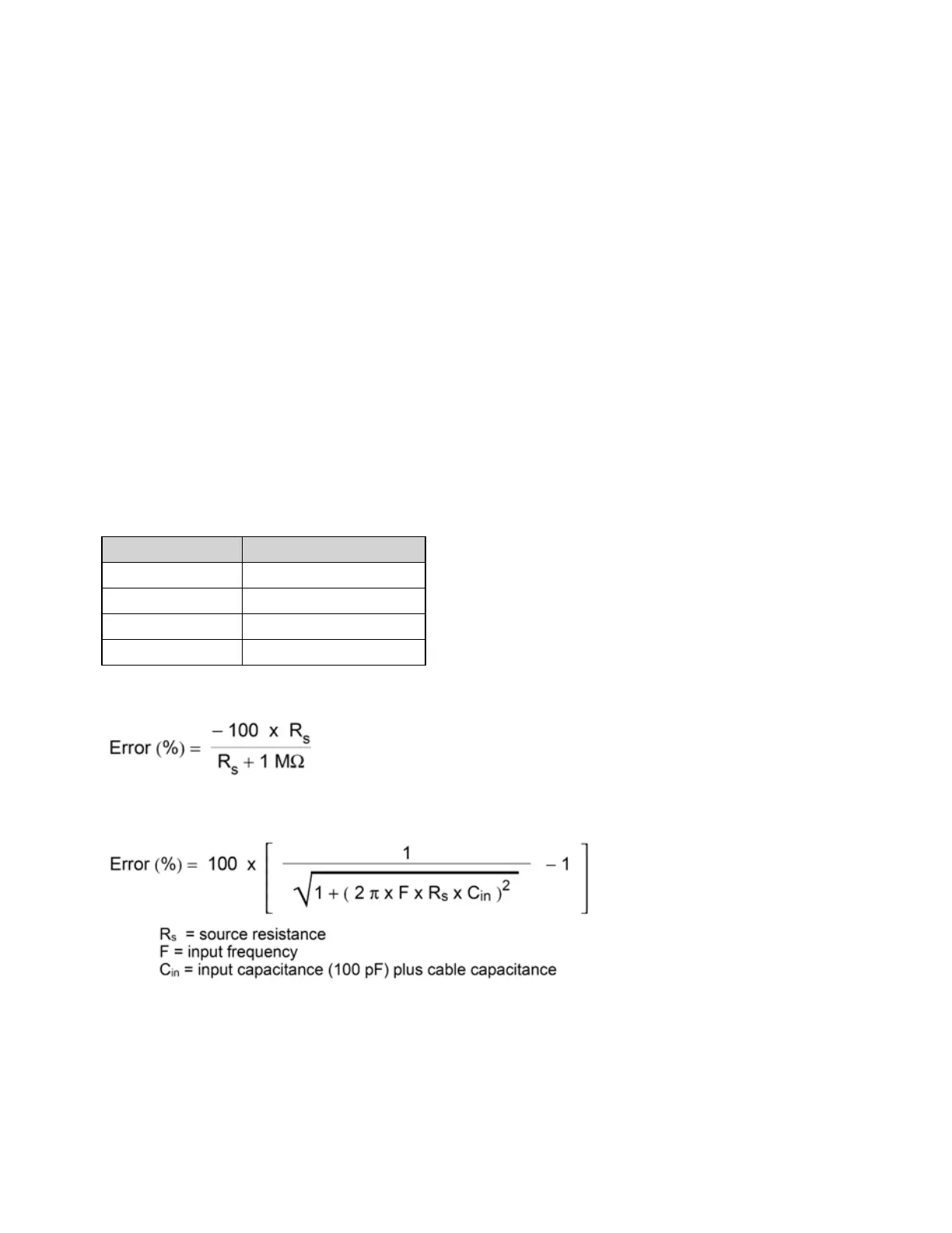 loading. The table below shows the multimeter's approximate input resistance at various frequencies.