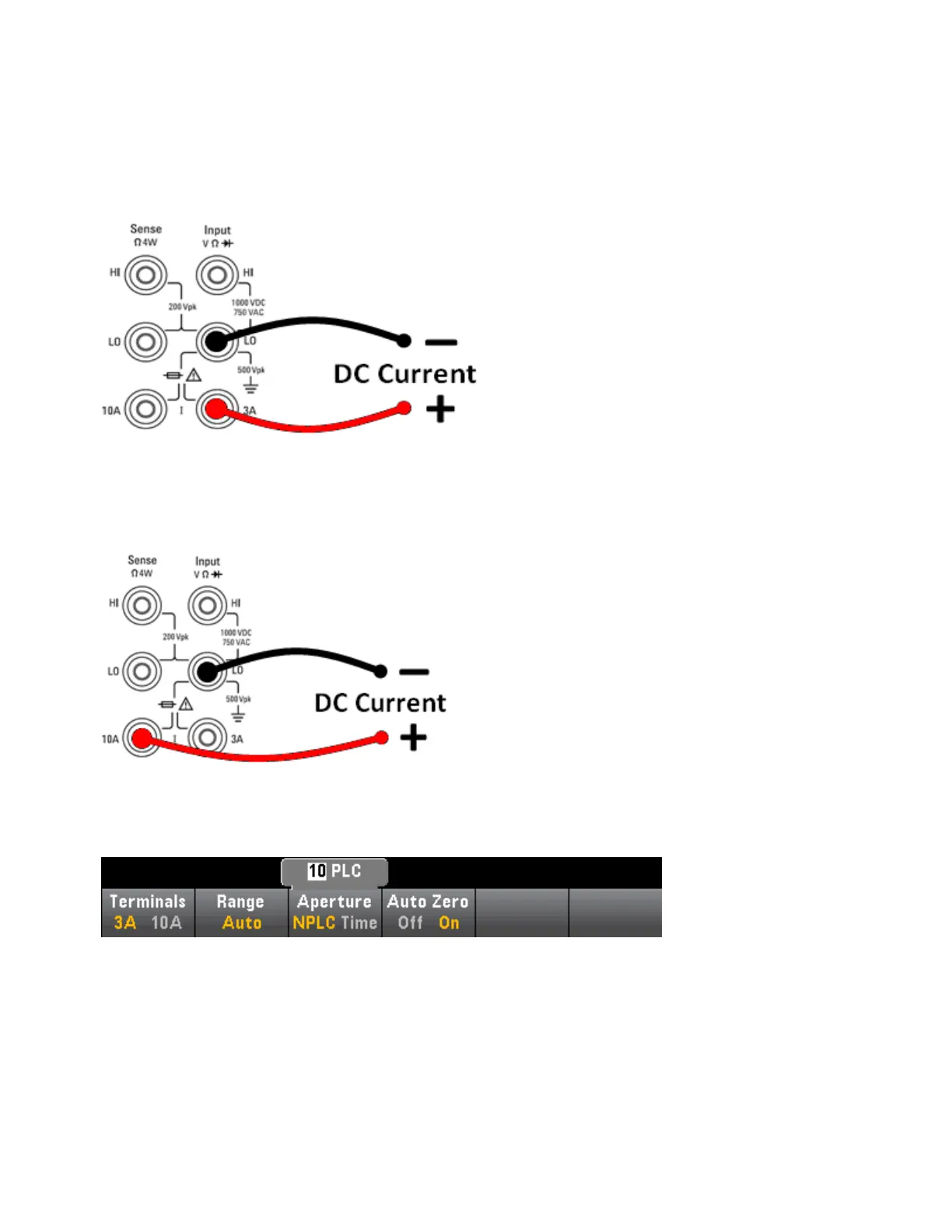 On the 34461A/65A/70A, you can also configure the measurement using the 10 A terminal, which is