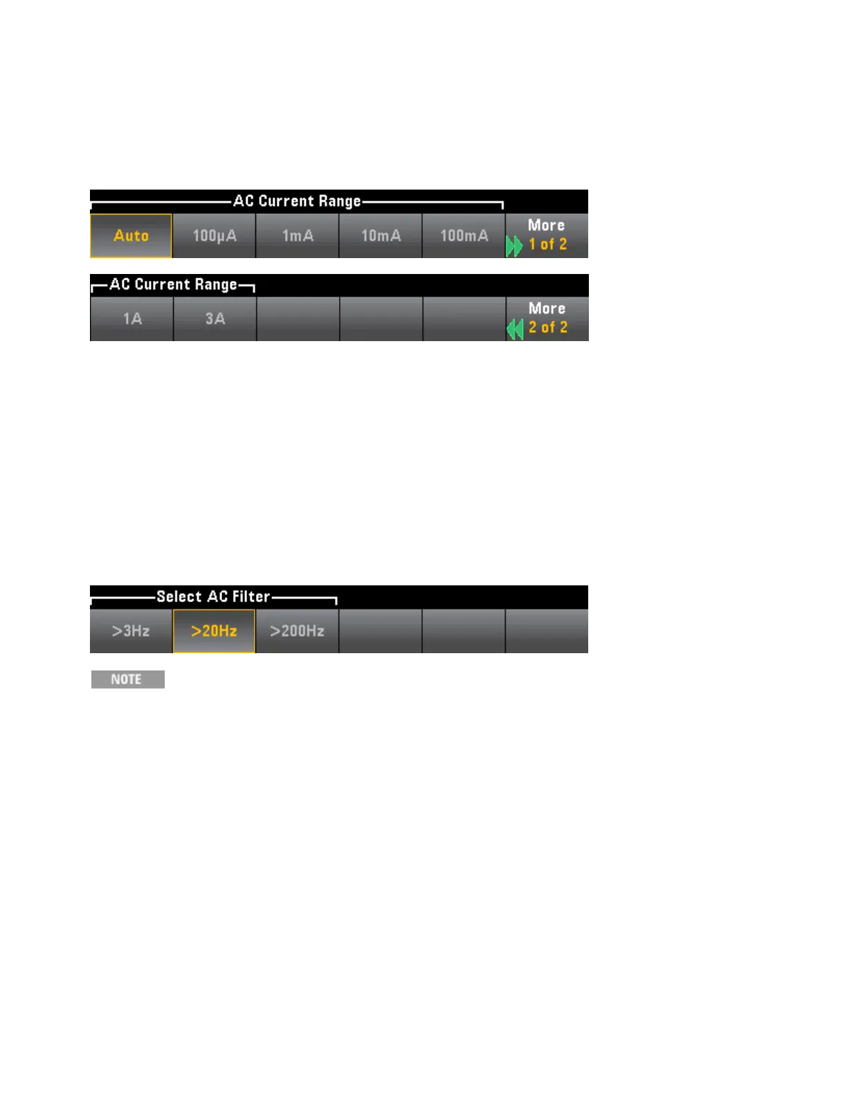Step 5: Press AC Filter and choose the filter for the measurement. The instrument uses three different AC