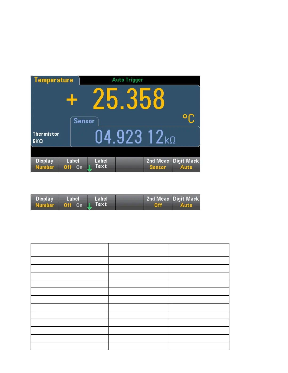 ondary measurements can be displayed in the Number and Bar Meter displays only. For example, a ther-