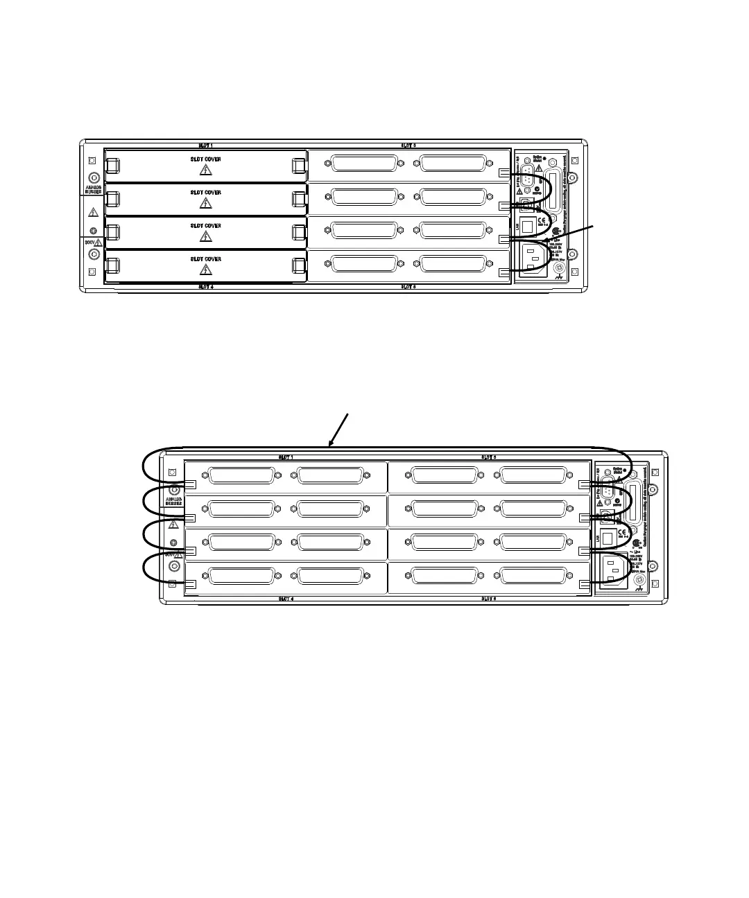 Eight 34934A modules (with attached configuration blocks) connected in an