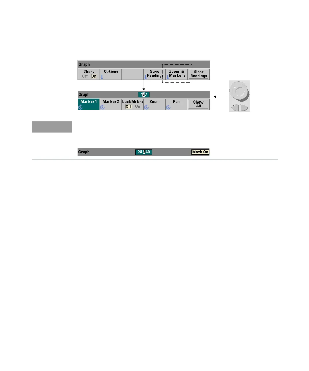 The ‘Marker’ softkeys allow you to position markers on individual readings or
