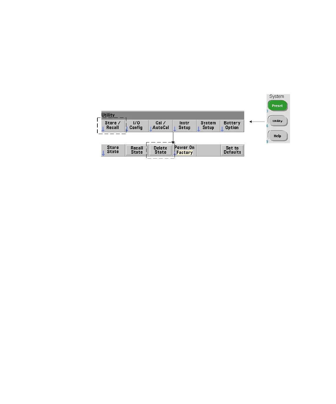 1 Press the ‘Store/Recall’ softkey to display the state menu.
