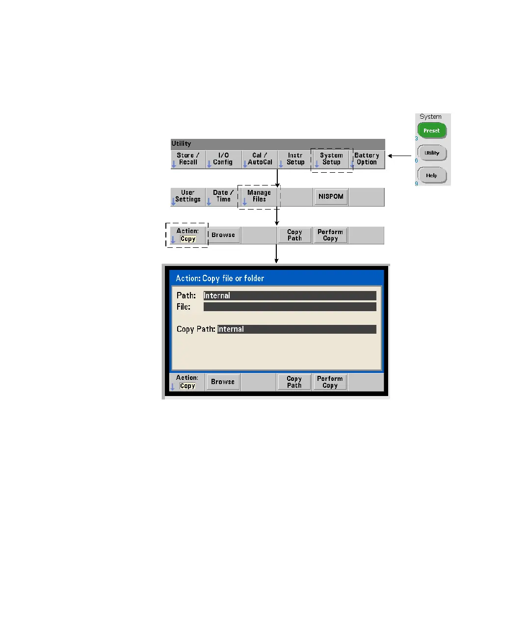 current folder (MMEMory:CDIRectory), path in the source and destination drives