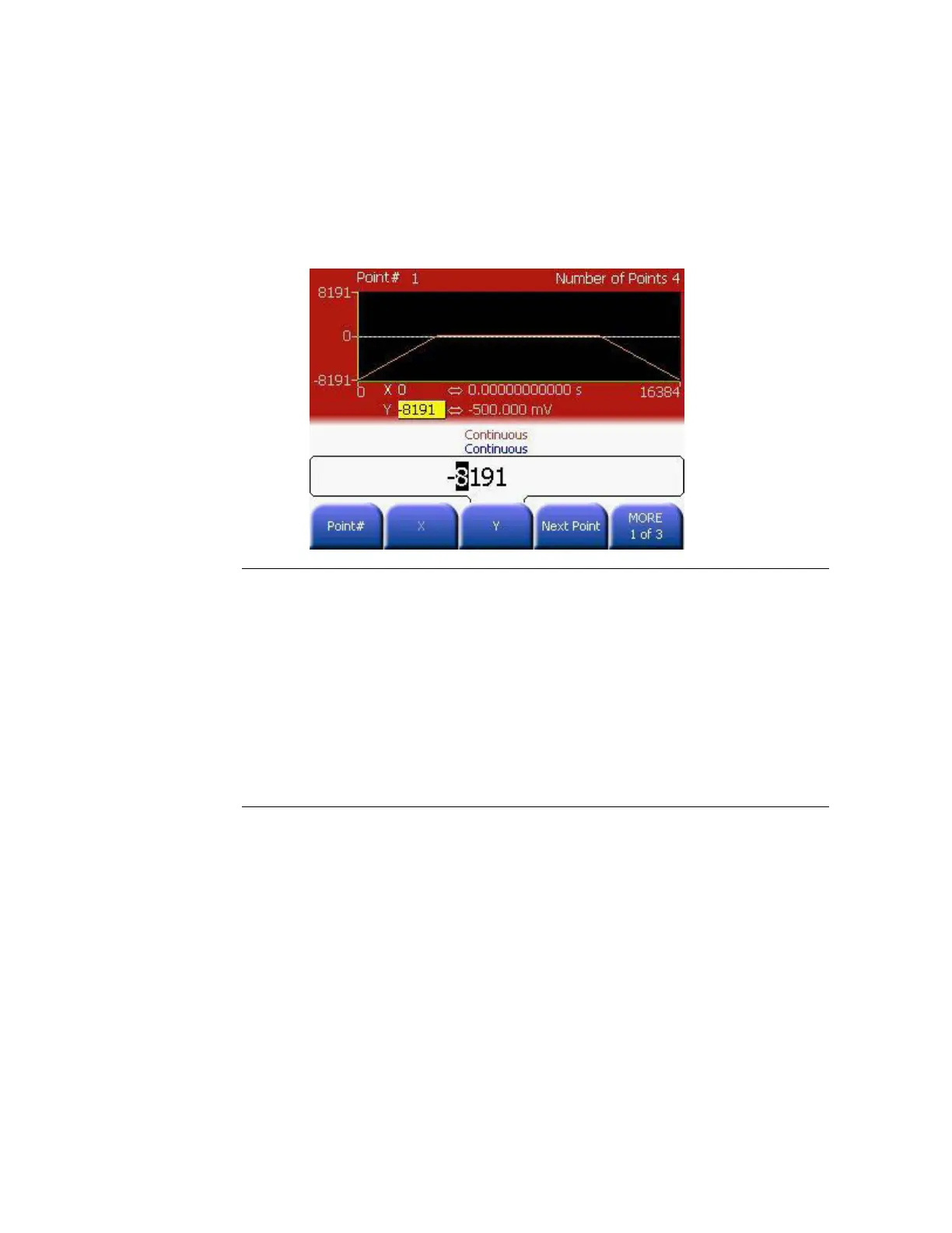 Press Y softkey to set the voltage level for Point #1 (this point is fixed at